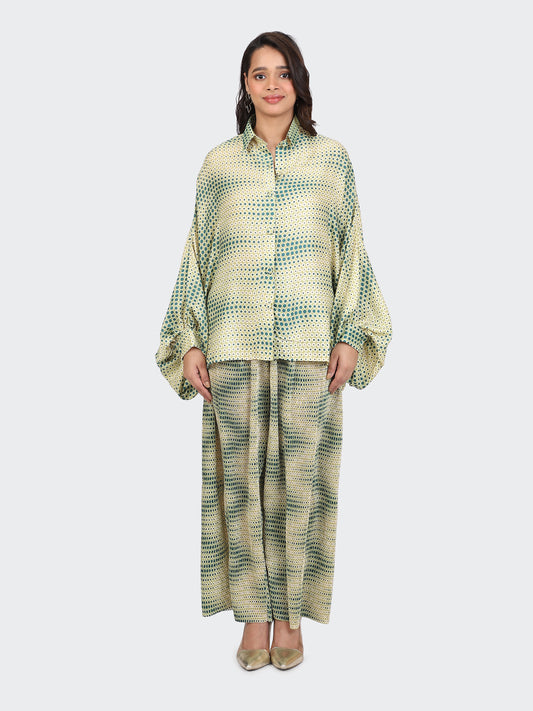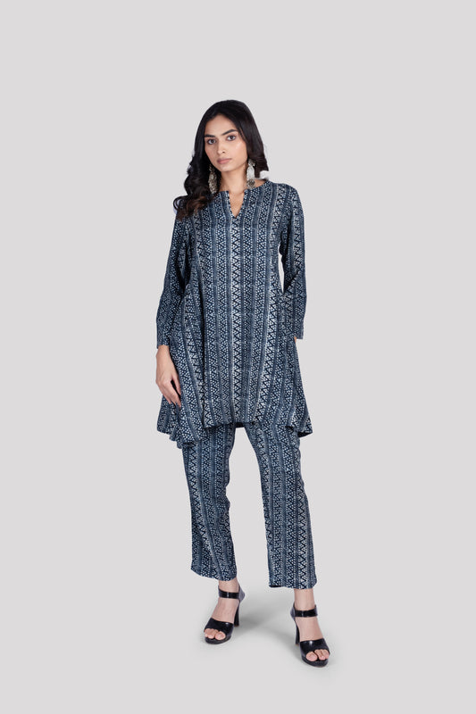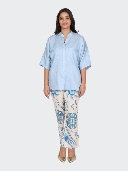 PRINTED MANDARIN COLLAR TOP WITH TROUSERS CO-ORDS