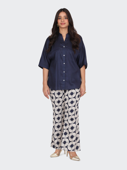CO-ORDS BOHEMIAN LOOK, SHORT TOP, AND SHARARA PANT-NAVY