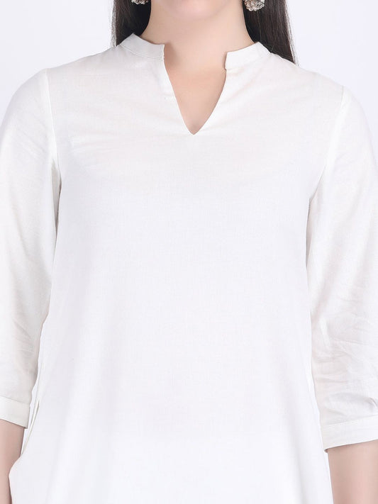 THREE-QUARTER SLEEVES PURE COTTON STRAIGHT KURTA WITH TROUSER
