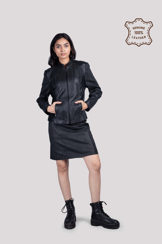LADIES KNEE-LENGTH LEATHER JACKET-BLACK