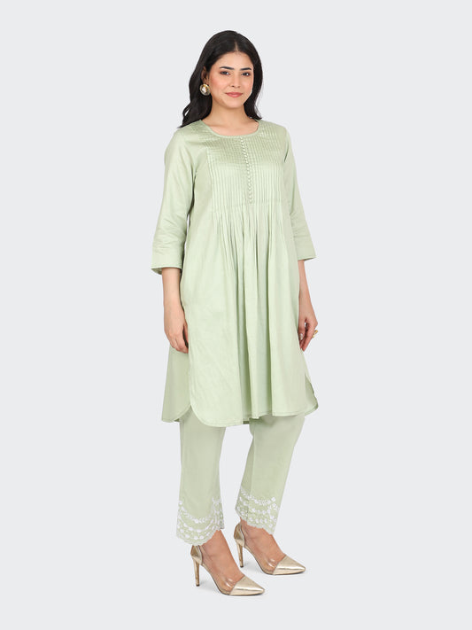 KURTA SET FEATURING PALAZZO, EMBROIDERY ON BOTTOM-MINT
