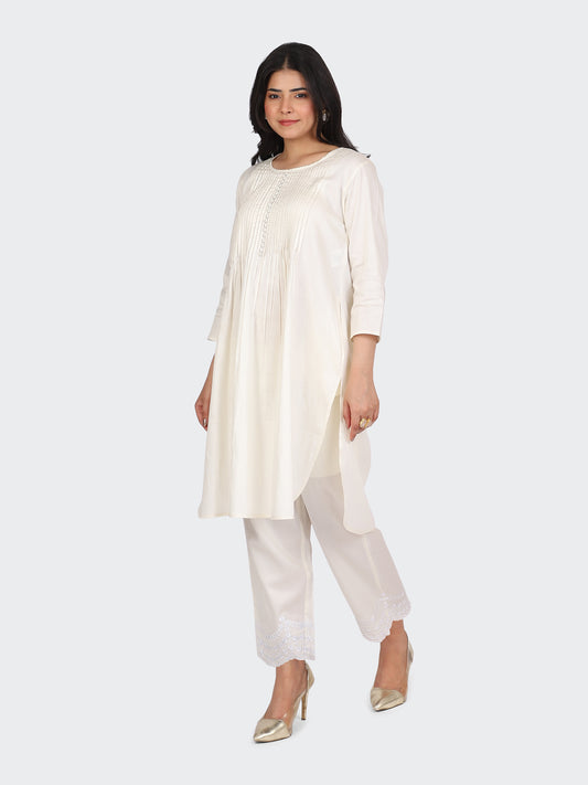 KURTA SET FEATURING PALAZZO, EMBROIDERY ON BOTTOM-CREAM