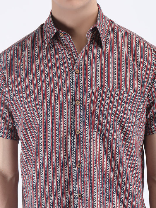 COTTON SUMMER SHIRT IN STRIPED GREY RED