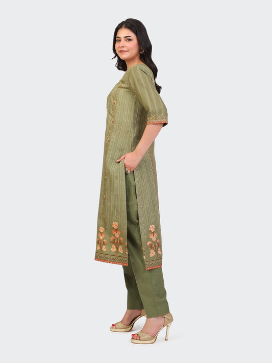 KURTA SET FEATURING HAND-EMBROIDERED FRONT, DUPATTA WITH HAND EMBROIDERY,LACE ALL AROUND-GREEN
