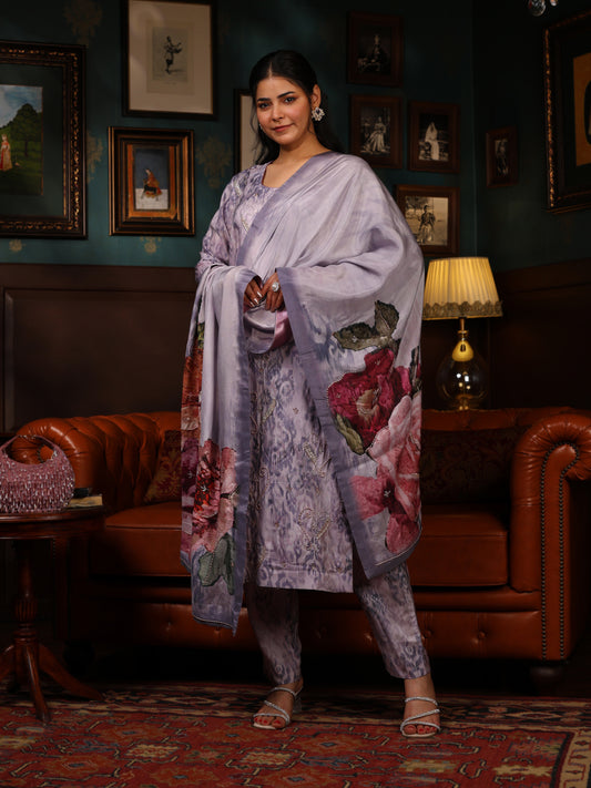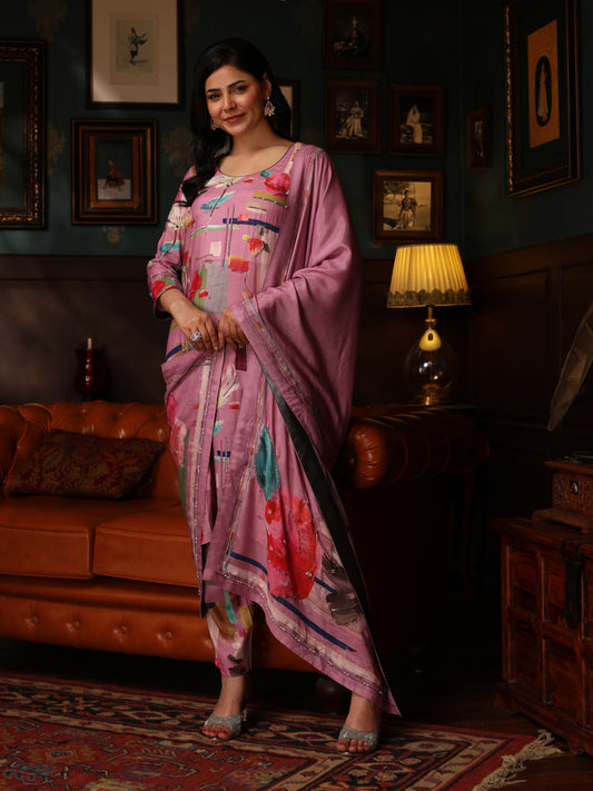 KURTA SET FEATURING HAND-EMBROIDERED FRONT, SLEEVES, AND DUPATTA-MAUVE