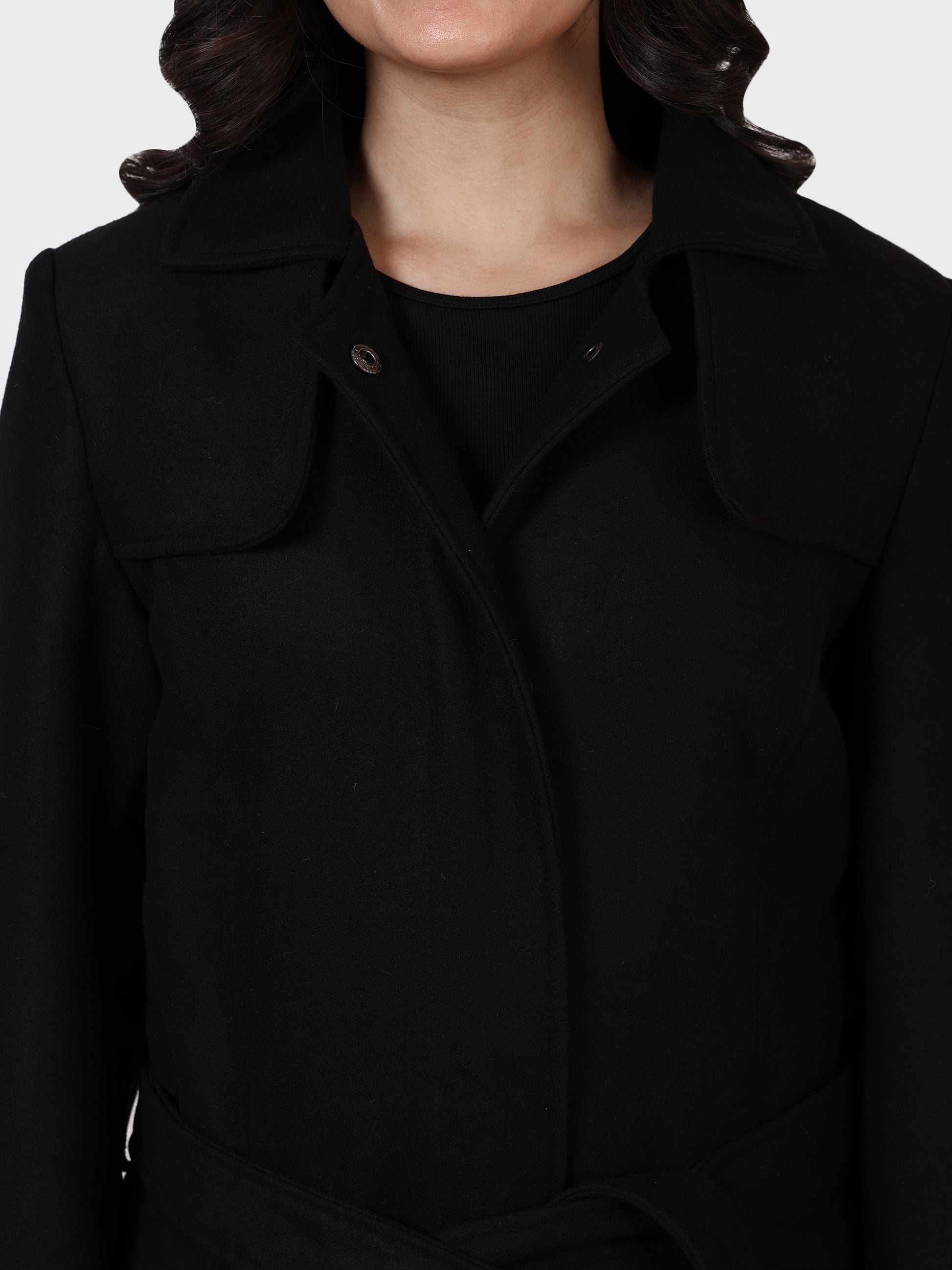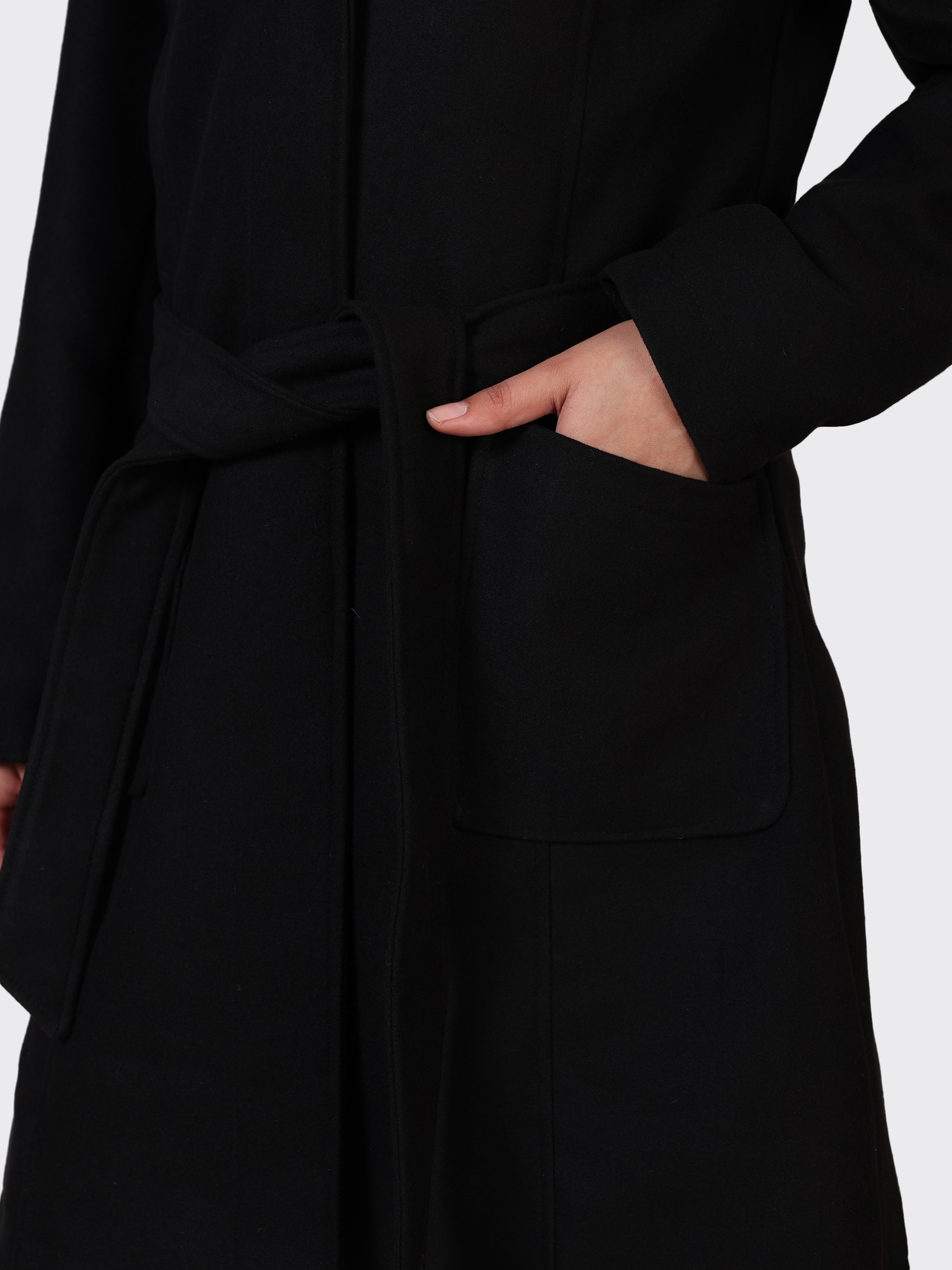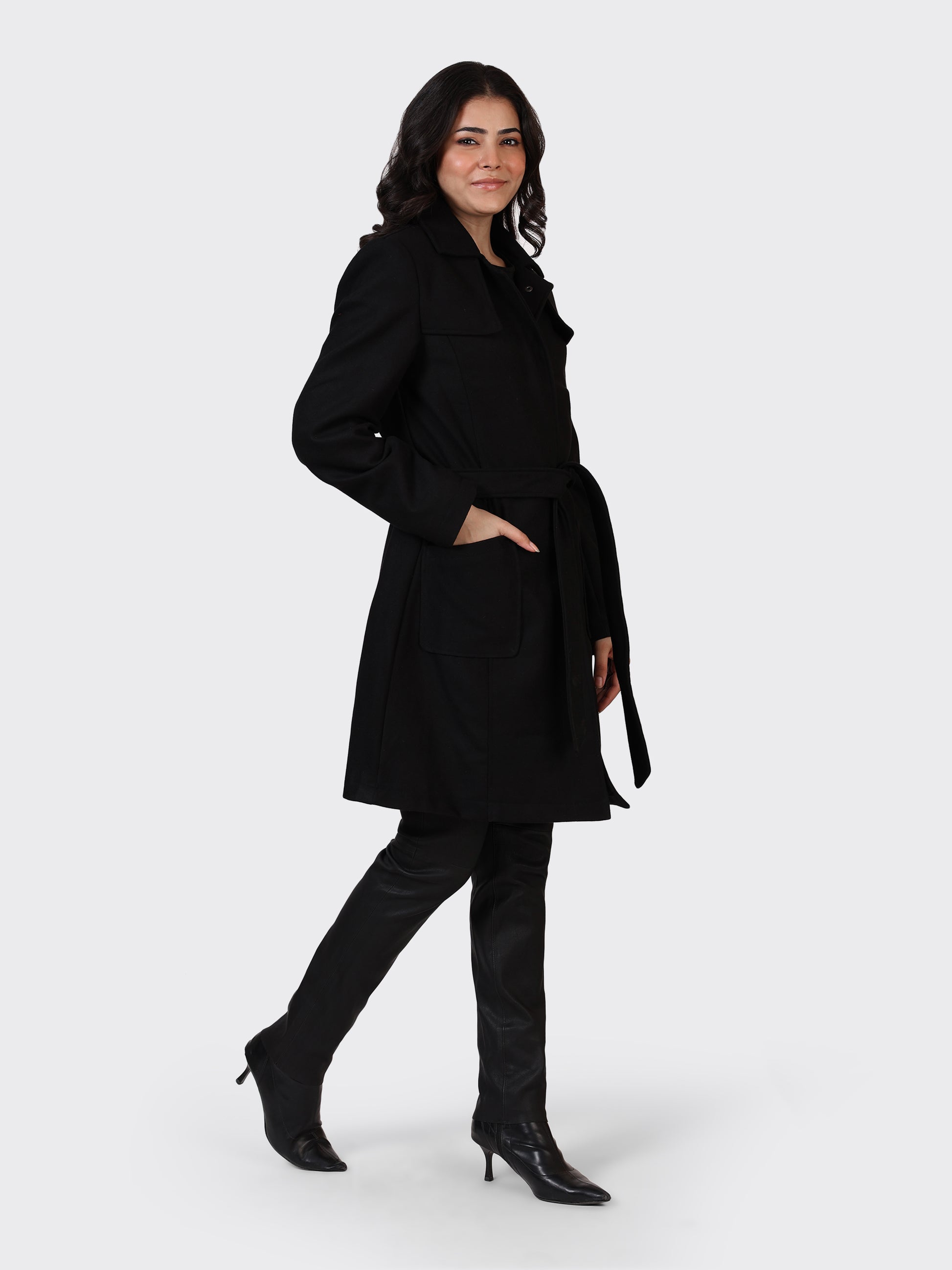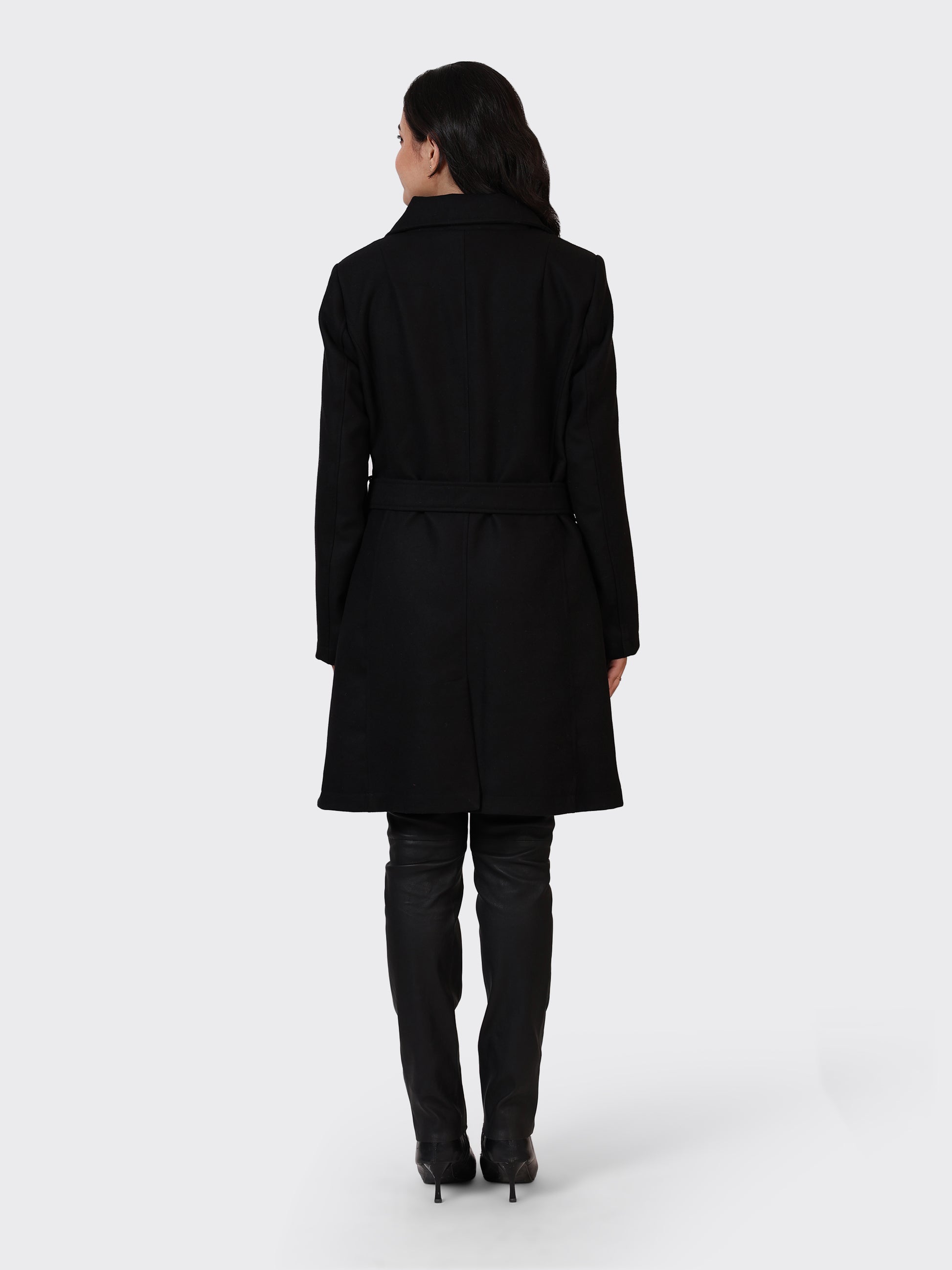 Ladies knee-length jacket made from 100% premium wool, designed to provide warmth and elegance during winter. This jacket features a structured silhouette with long sleeves, making it suitable for formal occasions or stylish casual wear. The soft polyester lining ensures comfort, while the high-quality wool fabric keeps you cozy in colder temperatures. Dry cleaning is recommended to maintain the jacket's texture and rich black color.