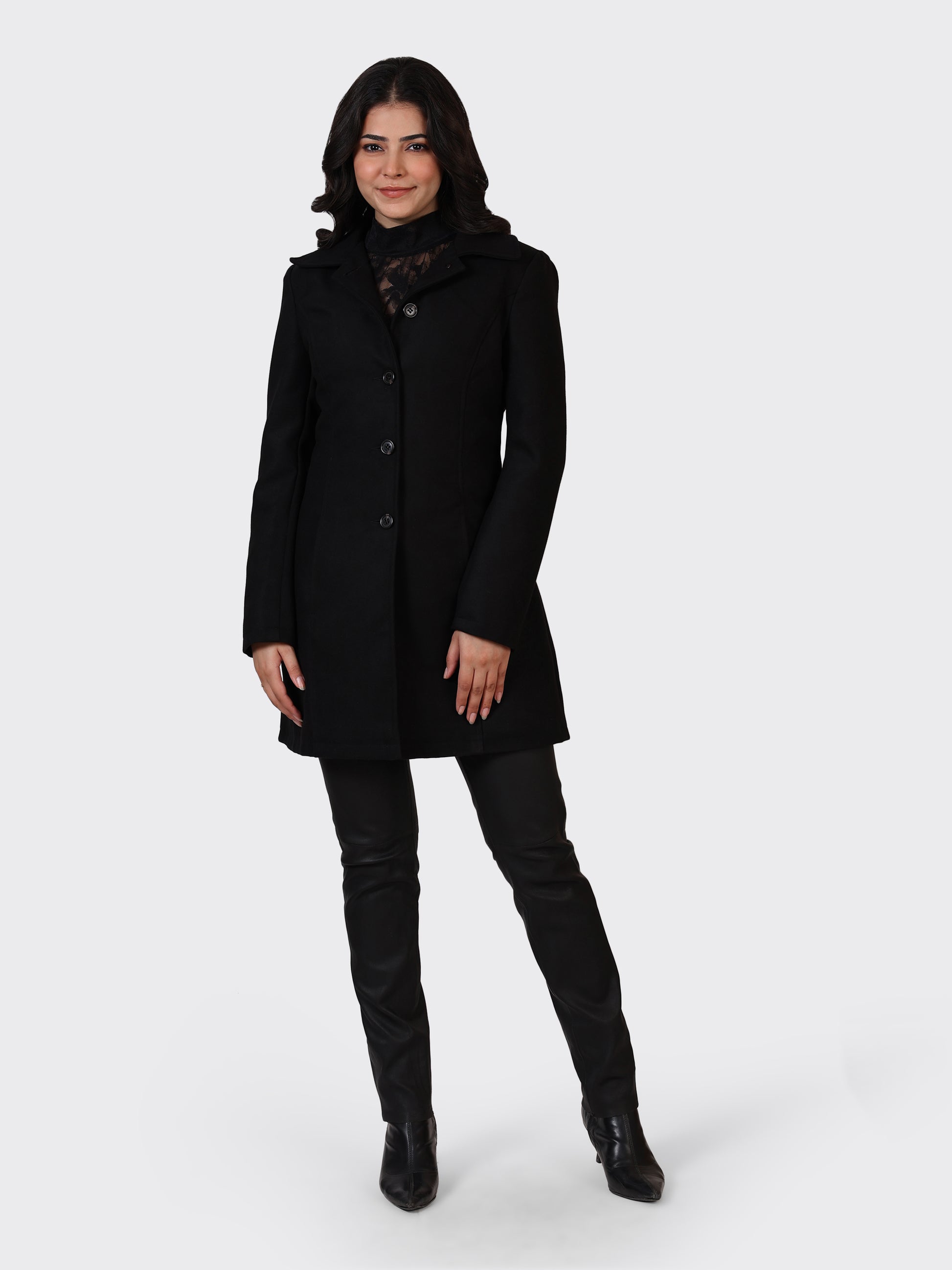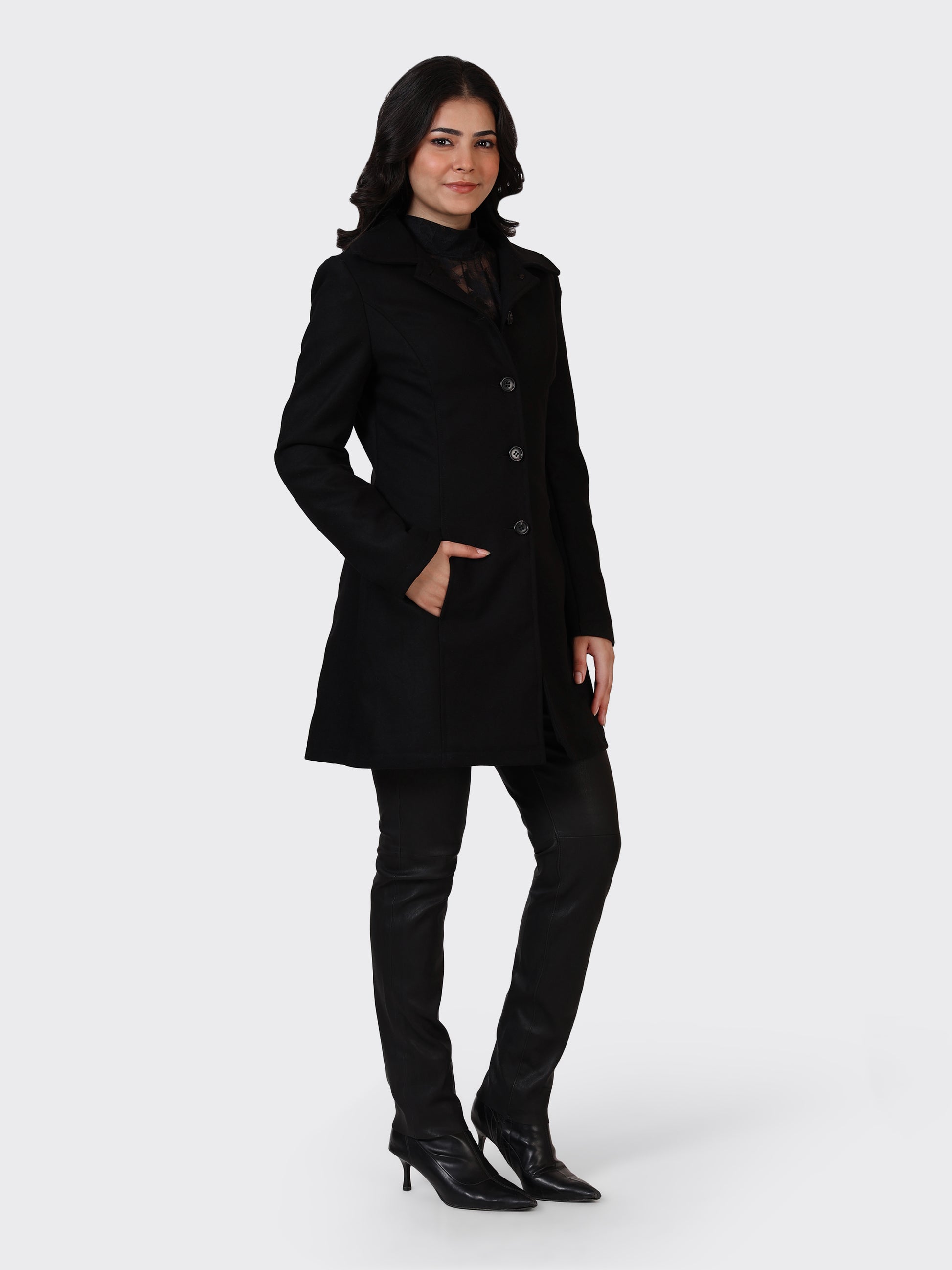 A stylish ladies' knee-length jacket made from 100% wool, perfect for winter wear. This jacket combines elegance and comfort, featuring long sleeves and a formal design suitable for both casual and professional settings. Dry cleaning is recommended for easy care.
