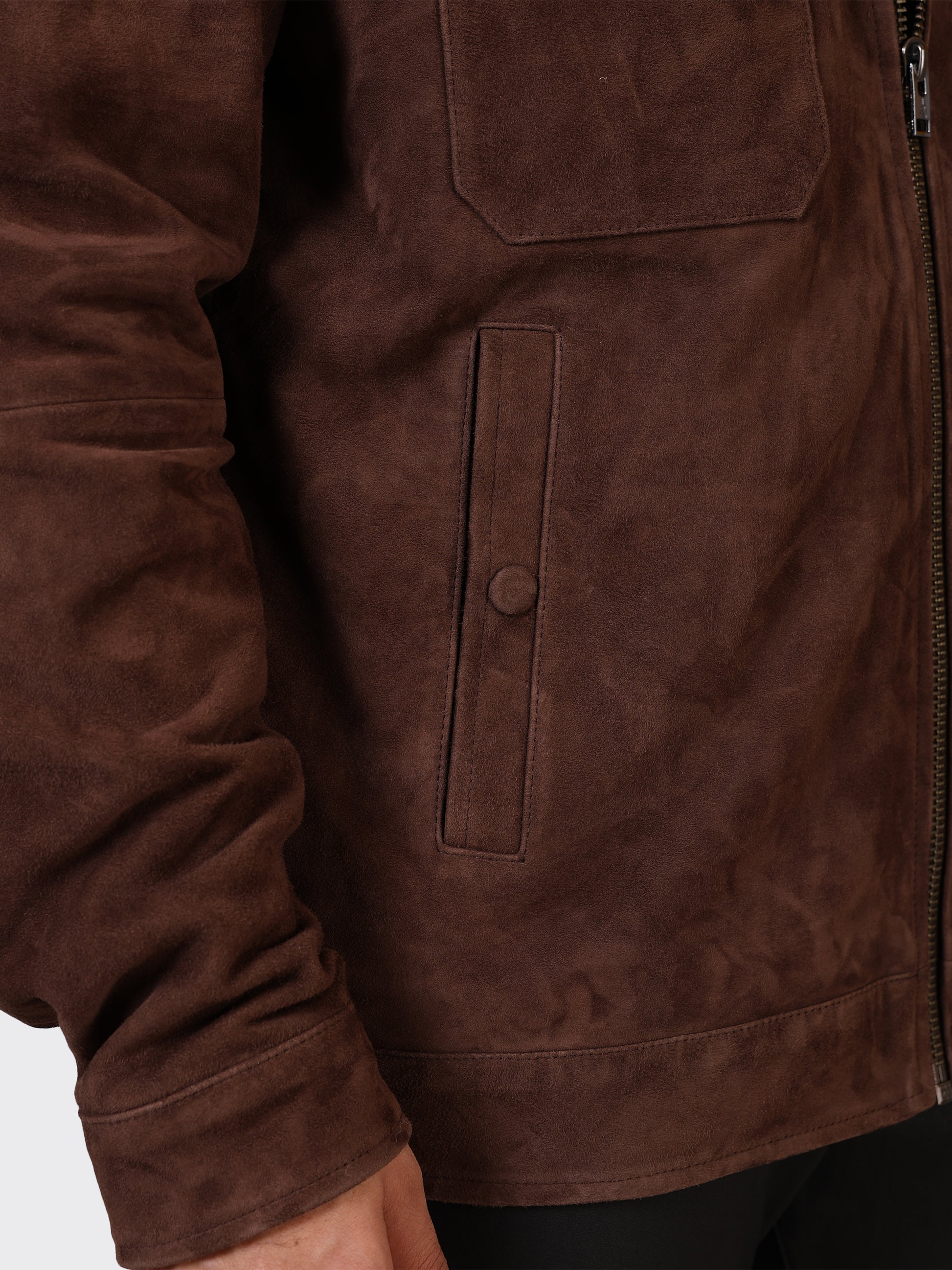 A stylish and durable men's waist-length leather jacket crafted from 100% genuine goat leather. Designed for winter wear, this jacket offers a structured fit with comfort and style. It features two side pockets and a smooth polyester lining, providing both functionality and a premium feel for everyday use or casual outings.