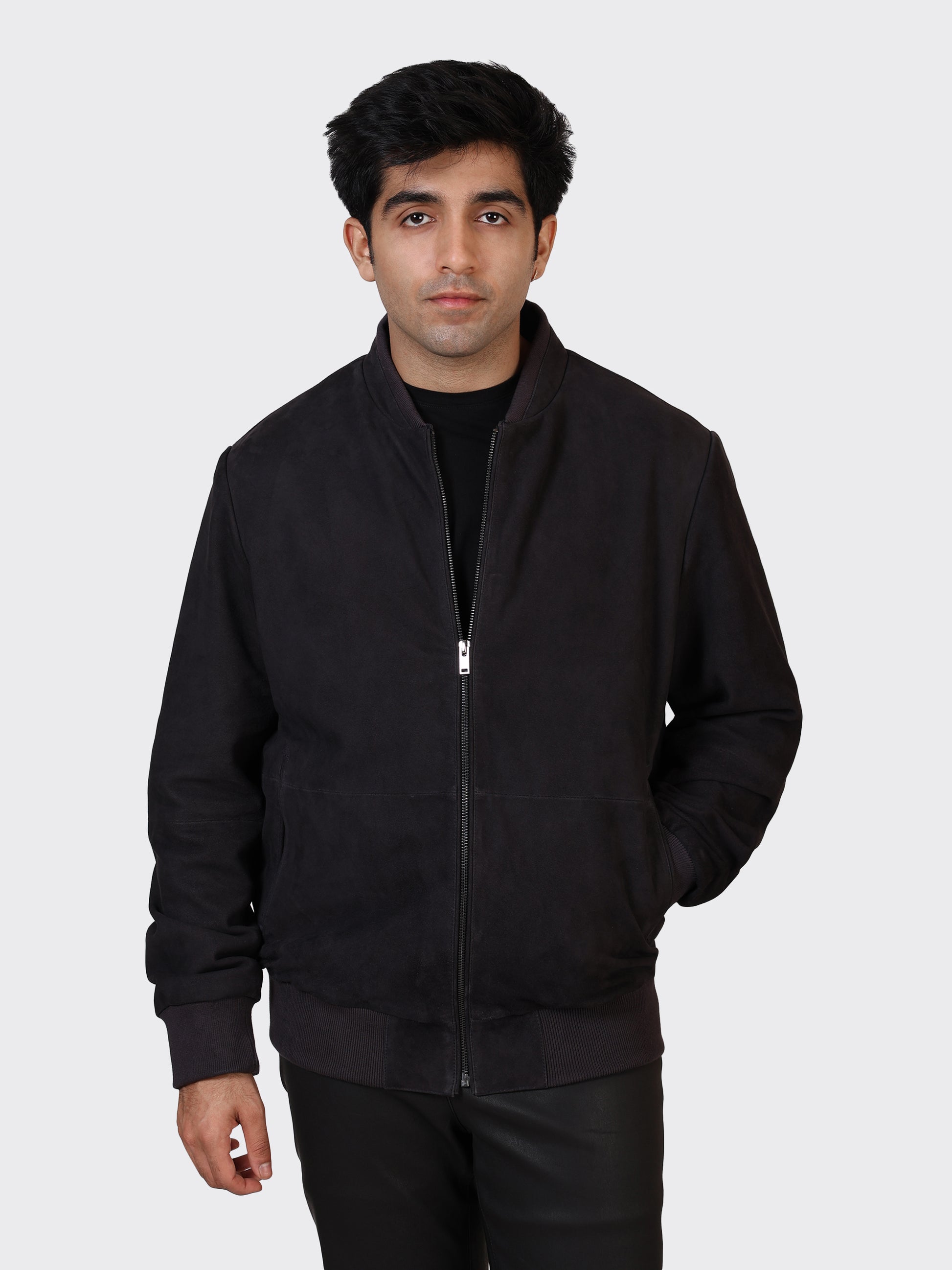 A stylish men's bomber leather jacket crafted from 100% genuine goat leather. Designed for winter, this jacket combines comfort and durability with a modern, casual look. It features a smooth polyester lining and specialized leather dry cleaning for long-lasting quality.